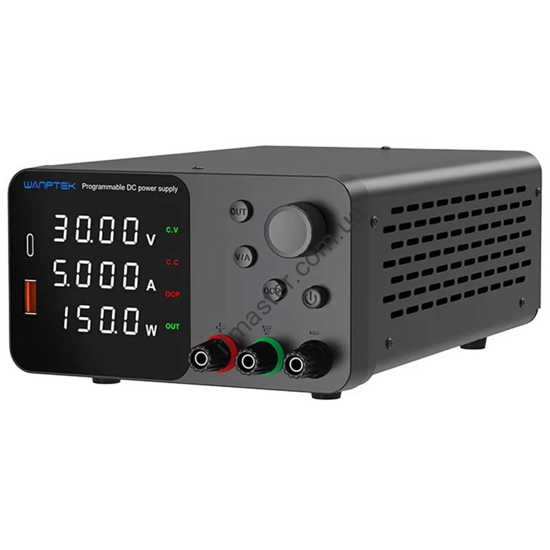 Технічні характеристики Wanptek TPS305 -Вихідна потужність: до 150 Вт -Вихідна напруга: 0~30В -Вихідний струм: 0~5A -Вхідна напруга: AC 230V/115V ±10% ; 50Hz/60Hz -Робоча температура: 0 ℃ ~ 40 ℃; відносна вологість: <80% RH -Температура зберігання: -10 ℃ ~ 70 ℃; відносна вологість: <70% RH Постійна напруга CV: -Стабільність напруги: 0,1% ± 3 мВ -Стабільність навантаження: 0,2%±3мВ -Пульсація напруги: ≤0,5% Vp-p -Від 0 до номінальної напруги безперервно регулюється Постійний струм CC: -Стабільність струму: 0,1% ± 3 мА -Стабільність навантаження: 0,2%±3мА -Пульсації струму: ≤0,5% Vp-p -Час відновлення: ≤500μS -Температурний коефіцієнт: ≤100ppm/℃ -Плавне регулювання від 0 до номінального струму -Вбудований вентилятор охолодження: є -Робоча температура: від 0°С до 40°С -Відносна вологість: < 80% -Захист: від перенапруги, перевантаження по струму, короткого замикання, перегріву -Допоміжні функції: порт USB-A, USB type C з підтримкою швидкого заряджання 18W -Габарити: 210(235 з ручками) х 90 х 150мм -Вага: 1,15 кг