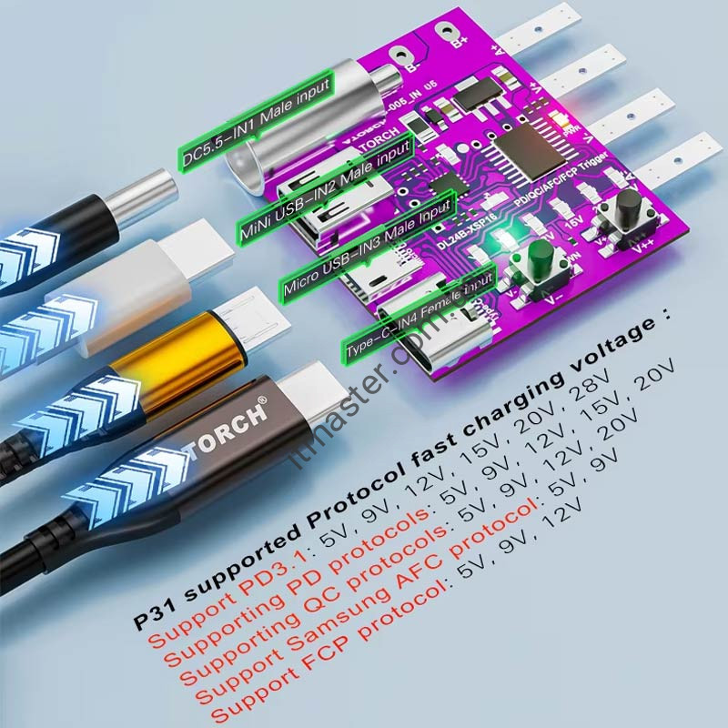 Тригер протоколів ATORCH DL24B-XSP16 — це пристрій, який підтримує різні протоколи швидкої зарядки, включаючи PD3.1, PD3.0, QC, AFC, FCP. Він може бути використаний для тестування зарядних пристроїв і повербанків з можливістю подачі різних рівнів напруги: 5V, 9V, 12V, 15V, 20V, 28V, з максимальною потужністю 140W при 28V.