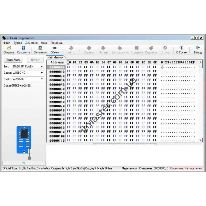 основі мікросхеми CH341A підтримує найпоширеніші EEPROM (I2C) і FLASH (SPI)