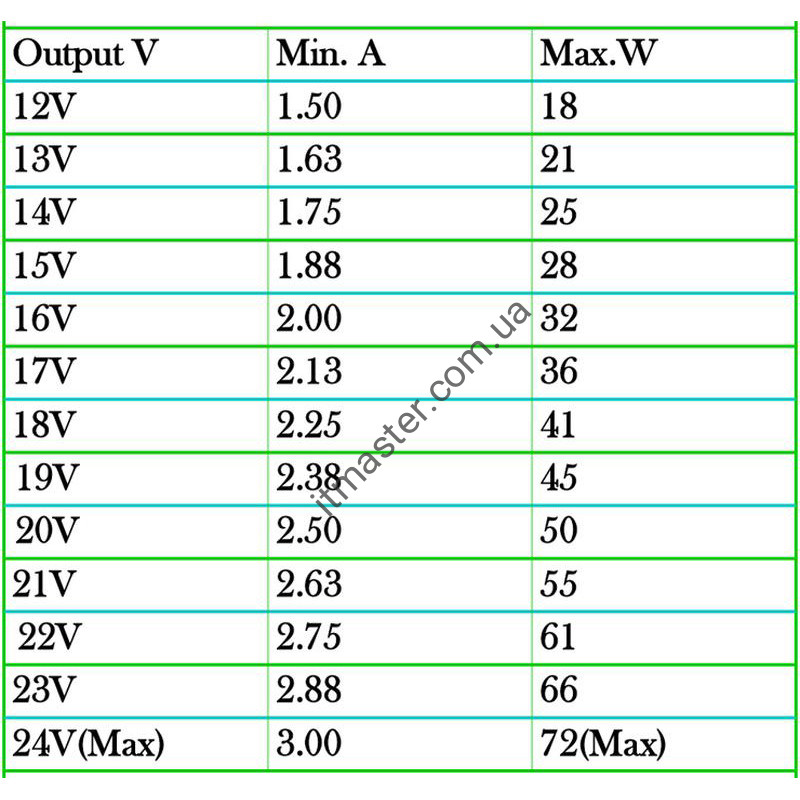- Живлення DC 12-24V 3A (будь-яке джерело живлення постійного струму, підійде адаптер від ноутбука, бортова мережа авто, батарея)