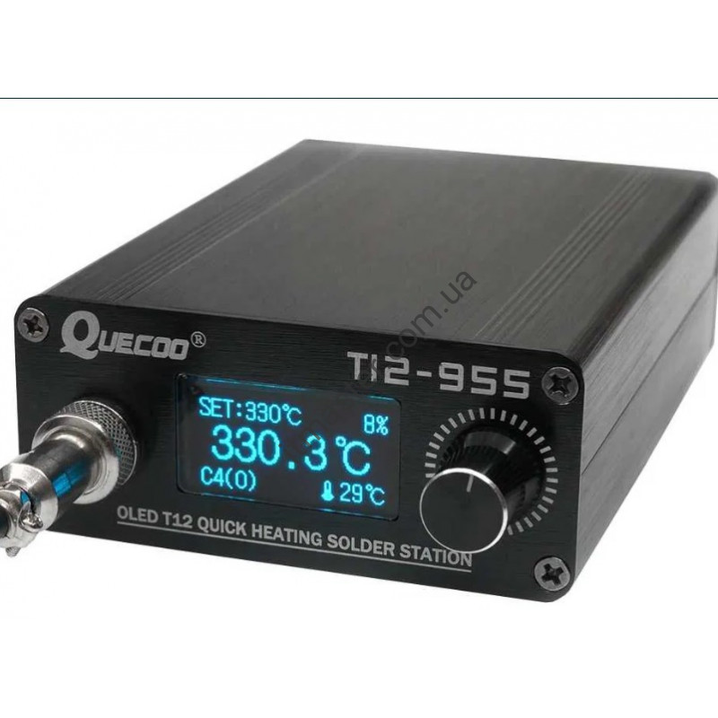 Якісна компактна паяльна станція QUECOO T12-955 на жалах T12, контролер STM32 з можливістю калібрування та збереження профілю жал.