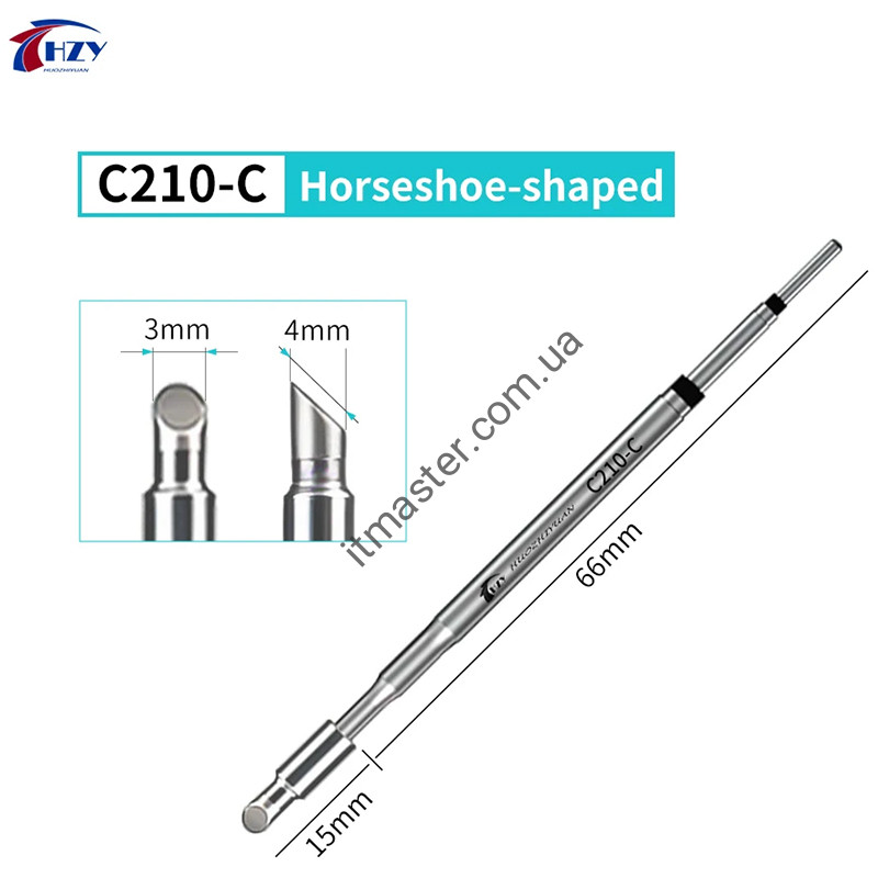 Жало C210-C для паяльних станцій та паяльників Fnirsi HS-02B, OSS T210, JBC C210, Amaoe C210, YIHUA 982, ALIENTEK T90A та подібних