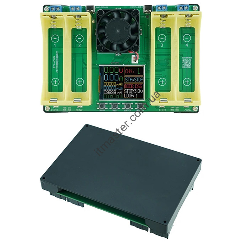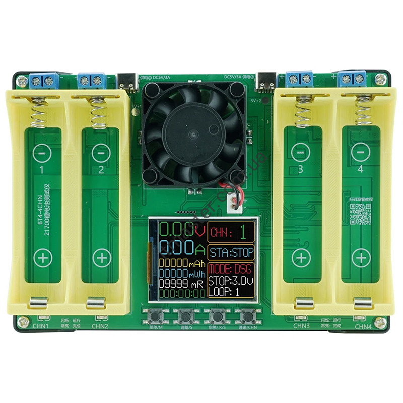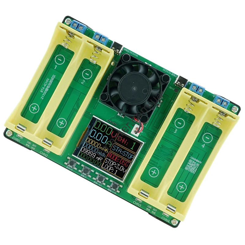 Багатофункціональний тестер для тестування акумуляторних батарей форм-фактора 21700. Пристрій підтримує вимірювання внутрішнього опору та ємності одночасно для чотирьох батарей, можливість роздільного заряджання та розряджання, а також автономну роботу кожного з 4 каналів. Вбудований вентилятор здатний запобігти перегріванню компонентів керування, а кольоровий РК-дисплей покаже важливі параметри процесу. Зверніть увагу: Літій-залізо-фосфатні АКБ (LiFePO4) не підтримуються. Також до використання підходять АКБ тільки з плоскими контактами.